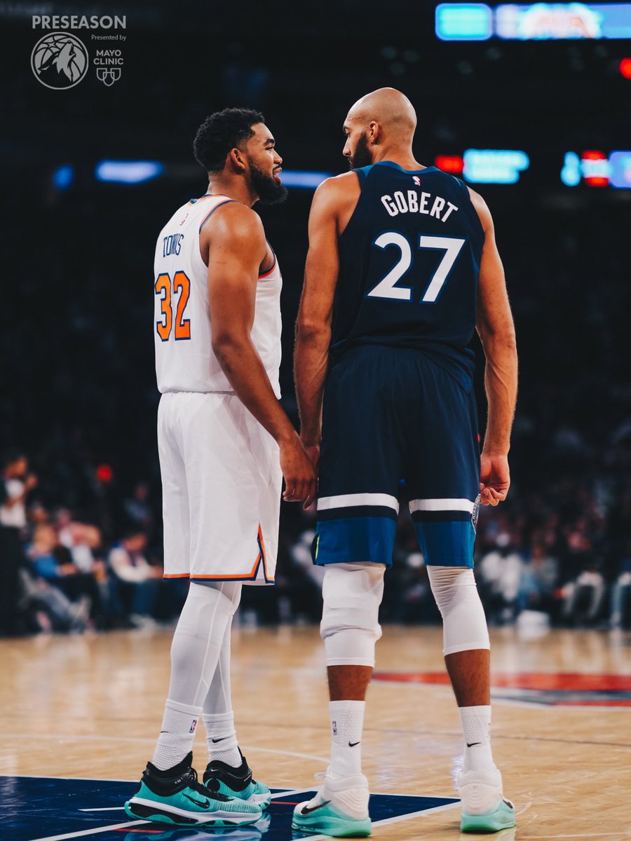 虎扑10月10日讯 今日,森林狼官方在赛后更新社交媒体5策略,晒出了卡尔-安东尼-唐斯与鲁迪-戈贝尔的赛场合照。