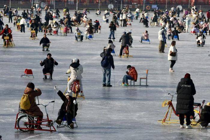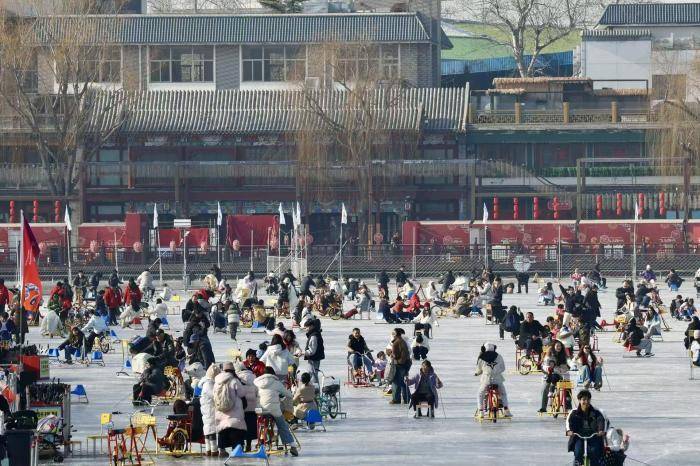 什刹海前海冰场仅开放半天并于11点清场,后海冰场同步开展设备撤离工作,即便工作日,冰场仍迎来大批市民游客,人气爆棚。